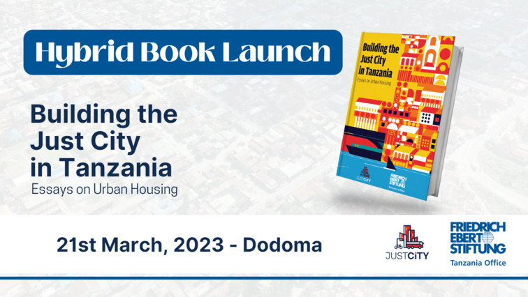 Friedrich-Ebert-Stiftung (FES) and the Just City Platform (JCP) Tanzania would like to cordially invite you to participate in the launch of the publication “Building the Just City in Tanzania: Essays on Urban Housing” with the Minister for Lands, Housing and Human Settlements Development, Hon. Dr. Angeline Mabula as the Guest of Honor, on March 21, from 11 AM to 2 PM at Morena Hotel in Dodoma.